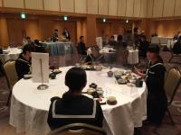 朝食を食べています。2年生20人、全員元気です。朝食後、徳島へ向かいます。